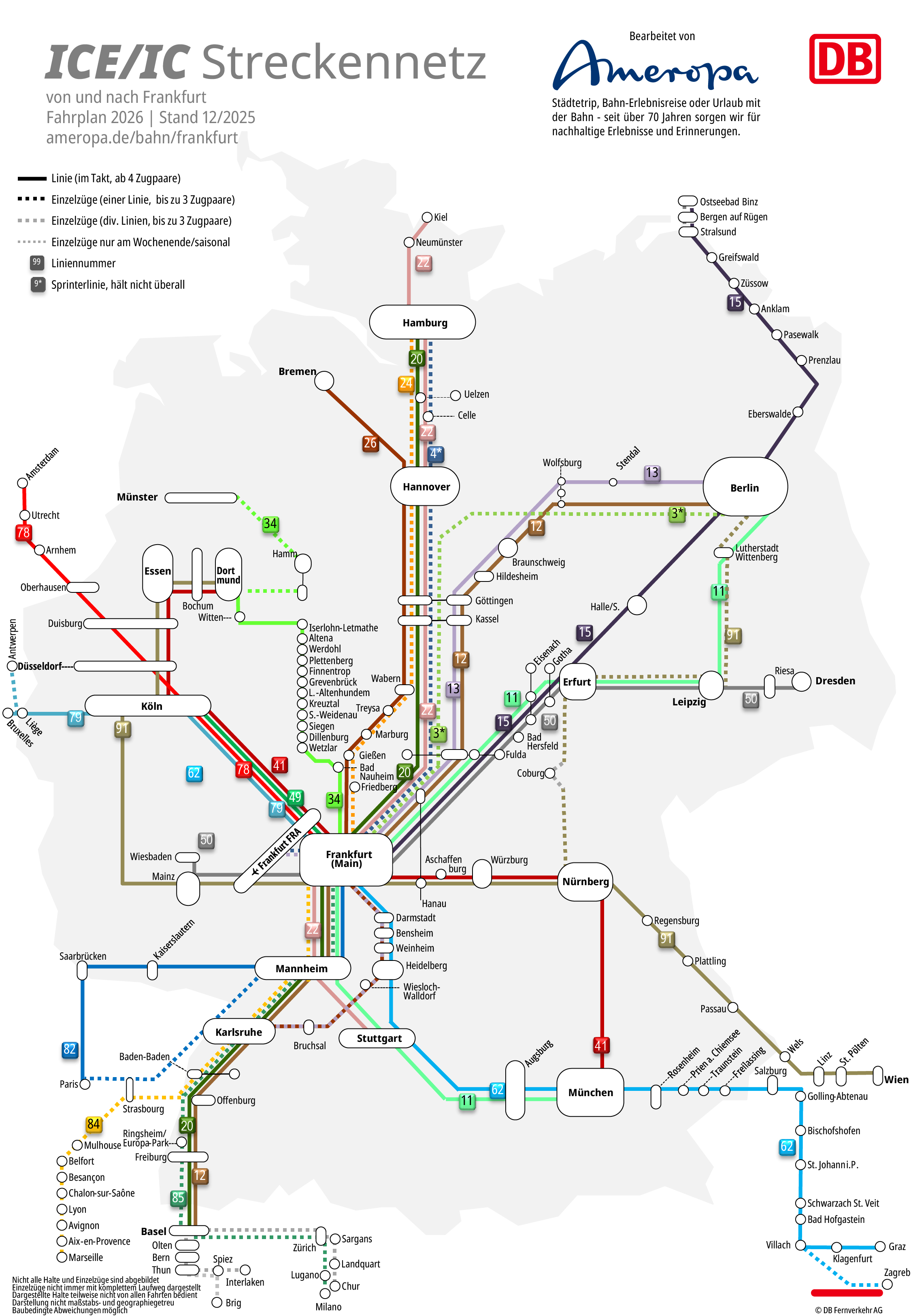 Ab Frankfurt können Sie viele interessante Reiseziele in Deutschland und Europa mit dem Zug erreichen. Die Karte bietet Ihnen einen Überblick über alle Direktverbindungen. Lassen Sie sich hier inspirieren.