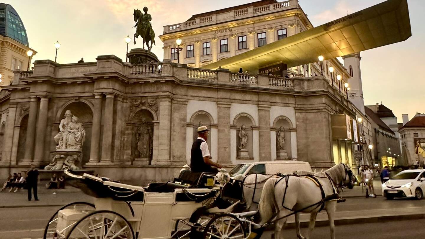 Von der Albertina gegenüber der Staatsoper gelingen fantastische Fotos des historischen Gebäudes – ein beliebter Fotospot in Wien.